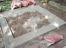 Приступаем к монтажу памятника. Привезли уже готовое надгробье, водрузили его на сделанное заранее основание, укрепили.
