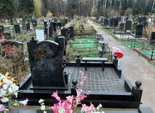 Завершающим этапом стала сборка оградки и укладка брусчатки. Ограждение мы создали из находившихся на могиле секций, кое где закрепив отломавшиеся навершия на разделительные столбики. Перед памятником мы установили гранитный цветник и две траурные урны, а по правую сторону от входа поставили заказанную клиентом лавочку, тоже изготовленную из чёрного гранита. Брусчатку мы замыли водой, одновременно удаляя всю строительную пыль, образовавшуюся в процессе работы.